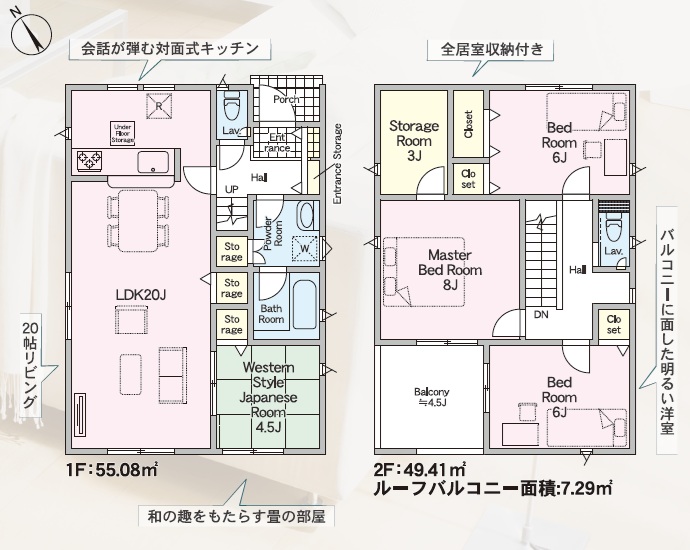 LDKは広々約20.0帖+約4.5帖の和室付き・2階の主寝室は約8.0帖・6.0帖・6.0帖の4LDKです!