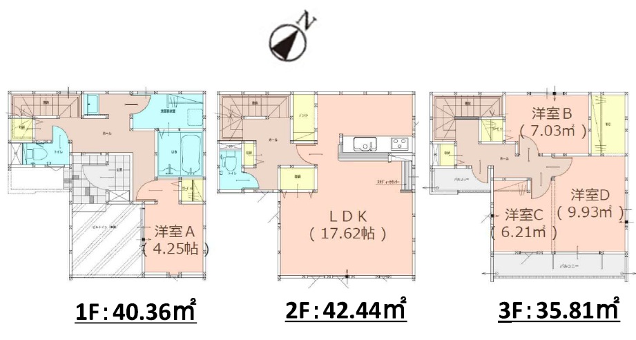2階LDKは、約17.6帖+パントリー&収納付き。1階は、約4.25帖の洋室。